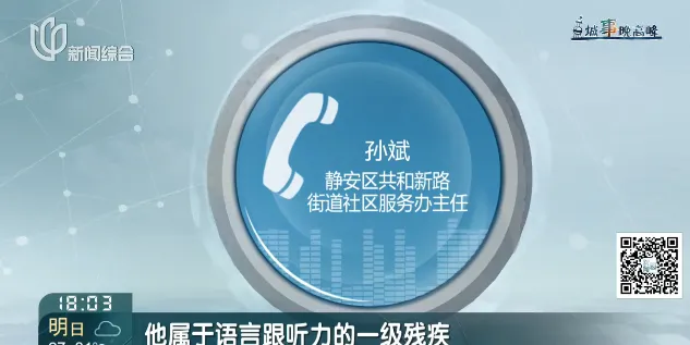 我们跟黄浦区外滩街道了解了一下,他属于语言跟听力的一级残疾。针对他目前的这种情况,我们下一步,可能一方面会同居委会、社区民警继续跟他做好邻里之间的调解;第二个是通过居委会和社区民警做好他亲属的工作,争取给他做一个精神方面的鉴定。