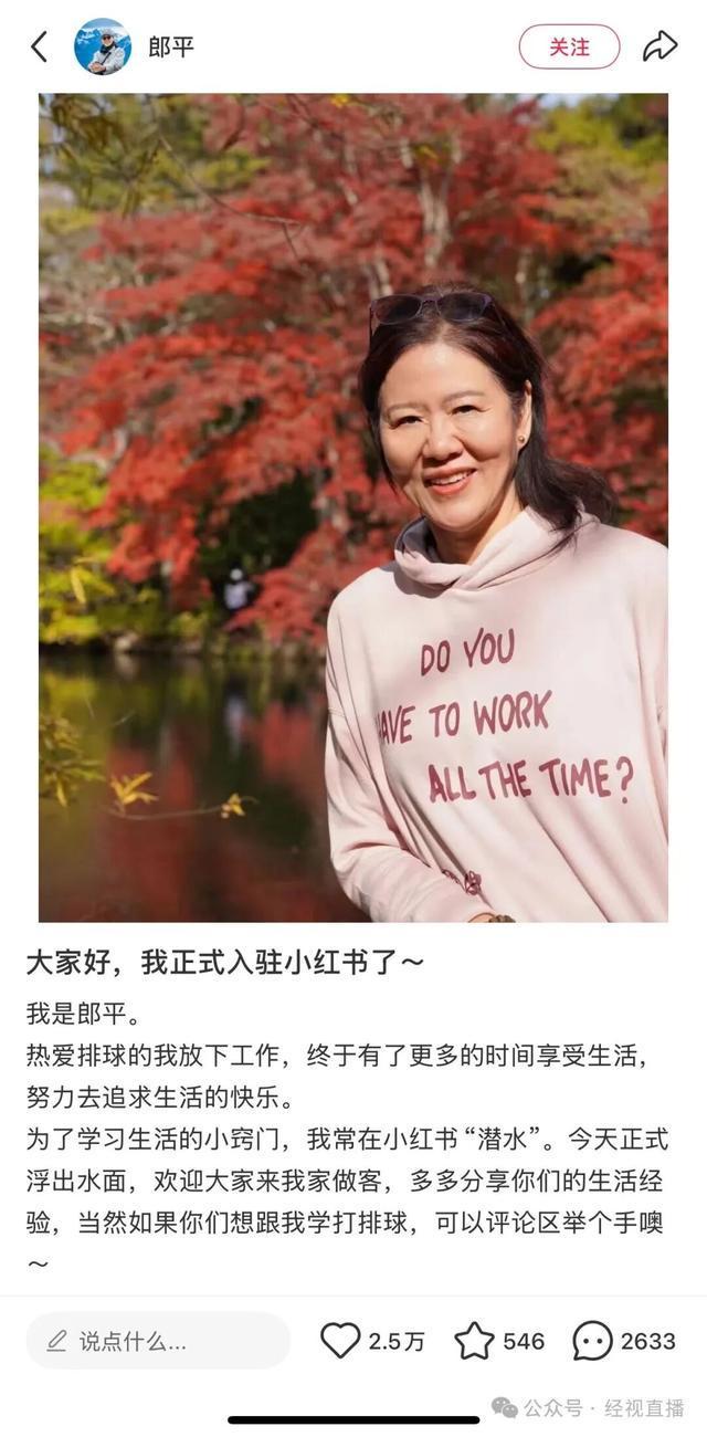 北京时间9月9日,郎平宣布正式入驻小红书。她在配文中亲切写道:“热爱排球的我放下工作,终于有了更多的时间享受生活,努力去追求生活的快乐。为了学习生活的小窍门,我常在小红书‘潜水’。今天正式浮出水面,欢迎大家来我家做客,多多分享你们的生活经验,当然如果你们想跟我学打排球,可以评论区举个手噢~”