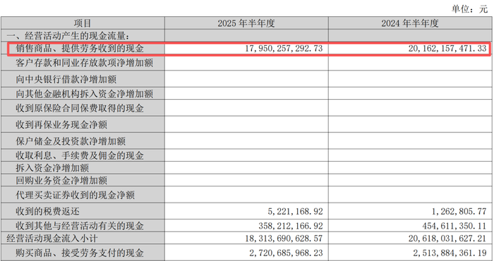 此外,今年上半年,泸州老窖销售回款只有179.5亿,比去年同期的201.62亿元少了30多亿。同时,上半年经营现金流净额为60.64亿,同比下降26.27%,低于同期的净利润76.63亿。
