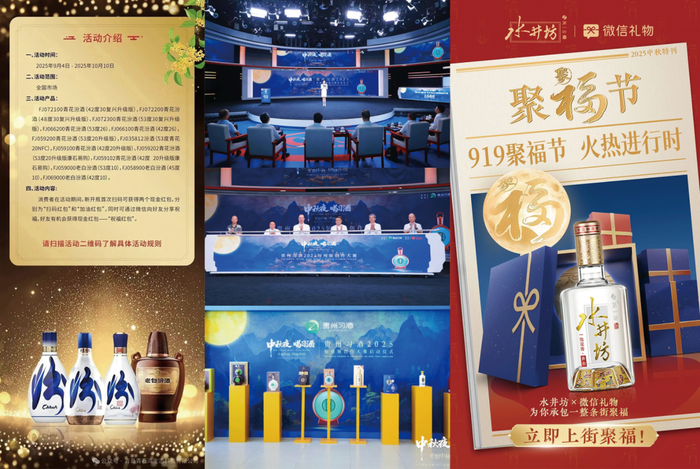 有灵活应对市场开展促销的,也有贴近市场进行营销的。汾酒推出了覆盖全国市场的中秋促销活动,除了扫码红包,还可通过微信向好友分享祝福,实现社交裂变传播;习酒延续“中秋夜·喝习酒”IP活动,于9月8日启动“中秋夜·喝习酒”短视频创作大赛,线下则在全国76个城市陆续举办“中秋夜·喝习酒”主题答谢会;水井坊与微信礼物合作,于9月19日推出“聚福节”活动,覆盖全国近20座城市,线下打造“聚福街”沉浸式体验空间,线上消费者可通过“聚福兑好礼”,传递福卡等参与互动。