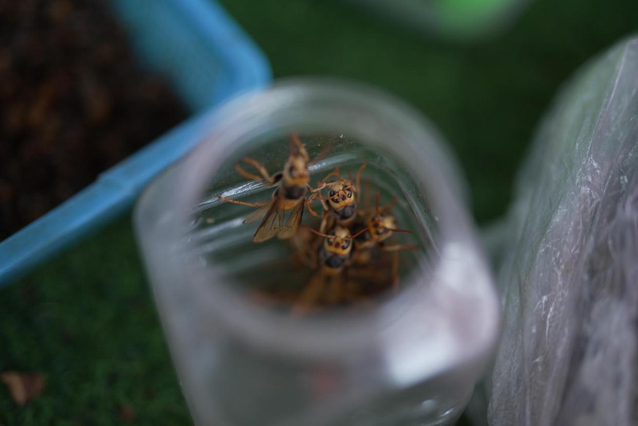 墨胸胡蜂的毒性也只是相对低。它仍属肉食动物,邵斌养幼蜂时主要投喂的就是白糖和兔肉。他称它们蜇人的同时会用嘴叮咬,“很锋利,咬一下肉就带走了。”