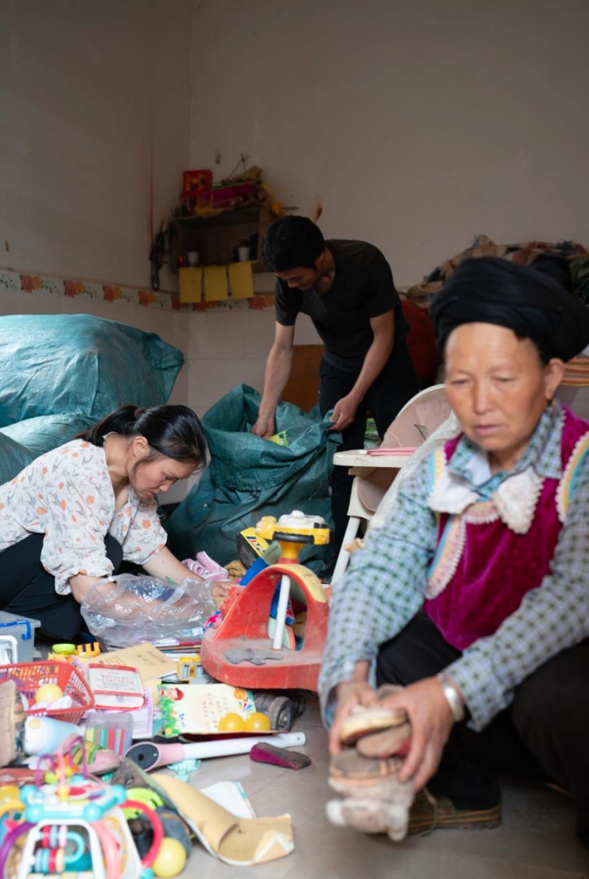 △ 家人在收拾兄妹俩生前遗物 / 摄影记者 袁召辉